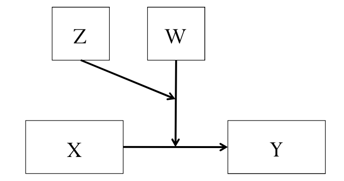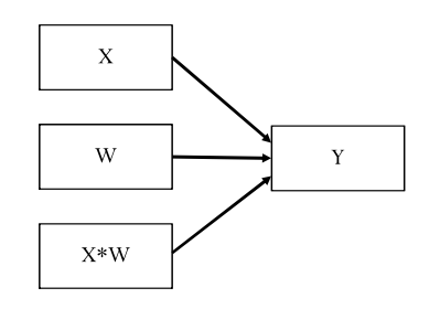 위의 모델에서, X와 W가 각각 Y에 미치는 영향을 main effects라고 해요. X*W의 영향은 interaction effect 겠죠?