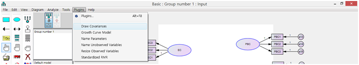 Plugins 탭에 가시면 Name Unobserved Variables 가 있어요. 클릭하면 비어 있는 곳에 오차항을 넣어줘요. 만약 오차항 외에도 비어 있는 곳이 있다면 다 오차항 이름으로 채워버릴꺼예요. 그러니깐 반드시 앞에 모든 과정을 빈틈없이 한 후에 눌러주세요.