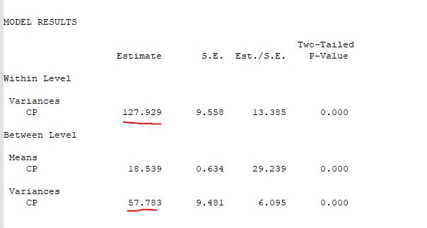 이걸 돌리면 결과창에 model results 가 보일꺼예요. 여기서 within level variance의 값과 between level variance의 값을 이용해서 ICC를 구하면 돼요.