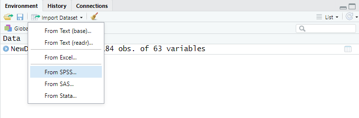 Environment -> Import Dataset -> ... 원하는거 불러오면 돼요.